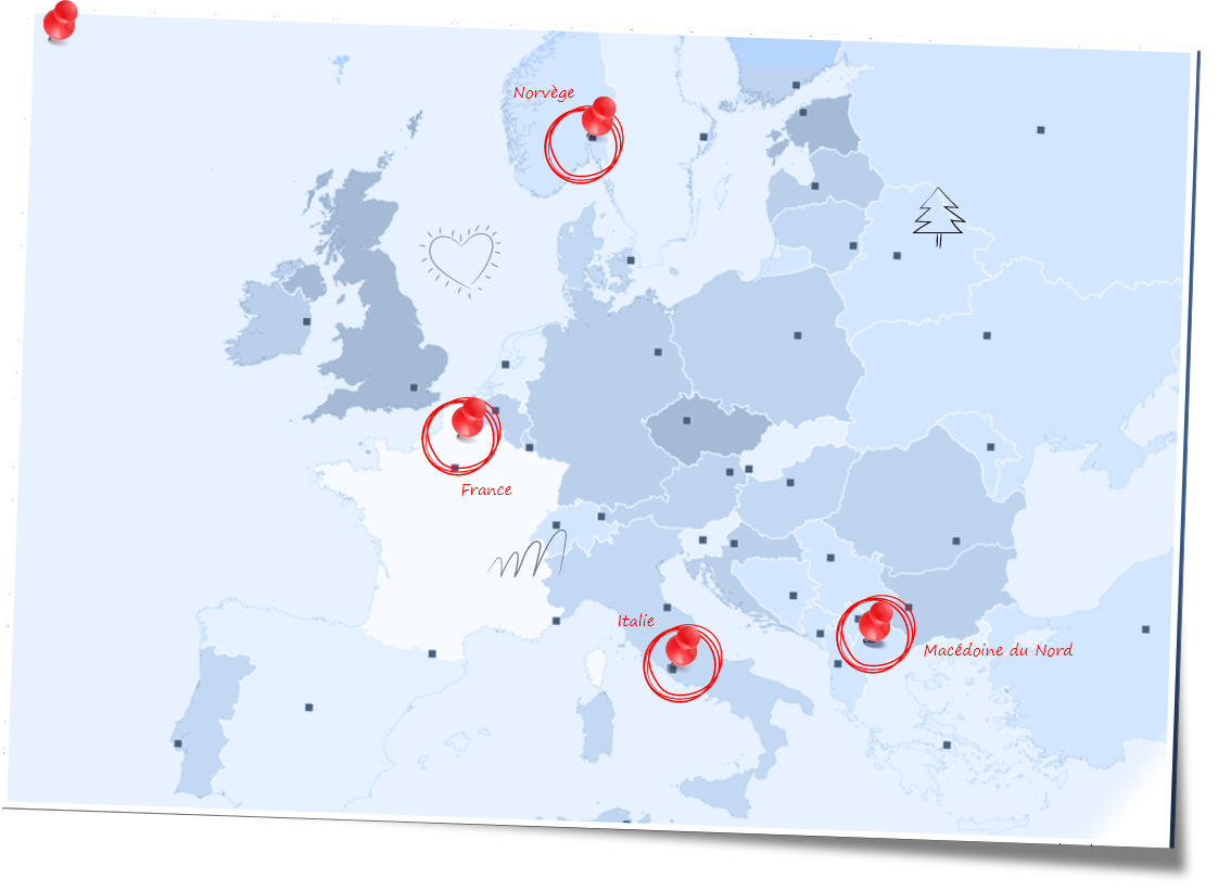 All the teachers and students motivated by our project and subject are spread across 4 high schools in France (Lycée Saint Paul in Lens), Italy (Liceo Classico e Linguistico Immanuel Kant in Rome), Northern Macedonia (SUGS Gimnazija Orce Nikolov in Skopje) and Norway (Malakoff videregående skole in Moss/Oslo). You can find the link to the website of each high school involved in the project and the project kick-off on Instagram.