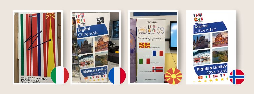 From de left : Italia, France, North Macedonia and Norway : a good way to communicate around our project !